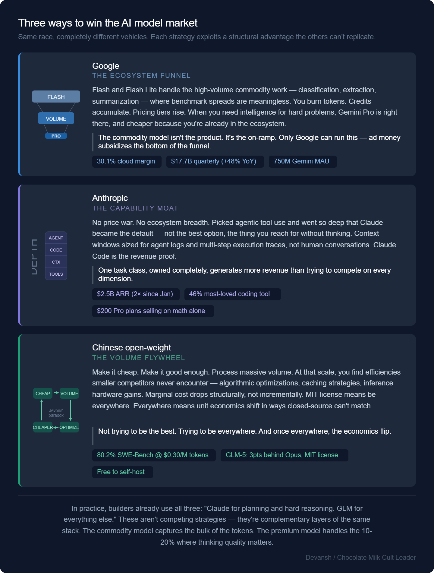 We spent February mapping out how labs survive commodity intelligence. We broke this into 3 strategies: