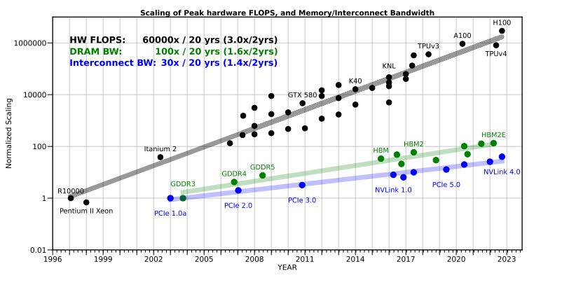 The math is simple. For years, compute power (FLOPS) has been compounding at 3x every two years. The memory bandwidth needed to feed it has grown at half that rate. The gap means that you’re (*checks notes for the right terms*) royally fucked.