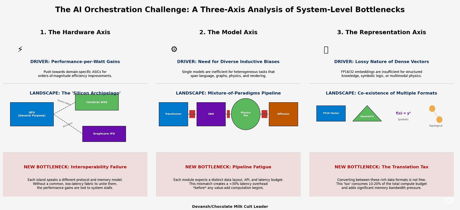 The game is no longer about optimizing a single CUDA kernel. The new frontier of failure lies in the seams. In the handoffs between chips, in the invisible glue in multi-model pipelines, in the vacuum between the chips. As AI systems become more distributed and heterogeneous, they’re running headfirst into a different kind of limit.