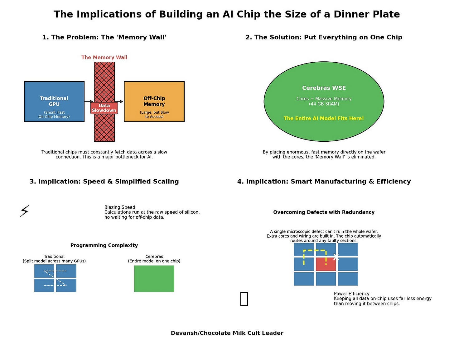 So we get a Cambrian explosion of new architectures, each built to attack the specific weaknesses the GPU couldn’t solve: memory, sparsity, and divergence. From wafer-scale behemoths to chips that compute with light, the data center is being re-architected from the silicon up.