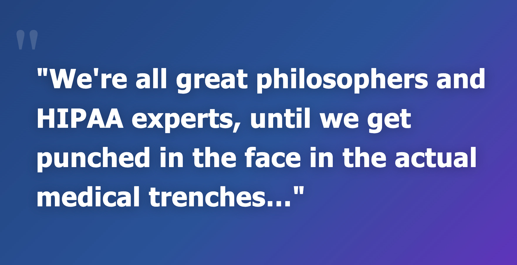 We’re all great philosophers and HIPAA experts, until we get punched in the face in the actual medical trenches…