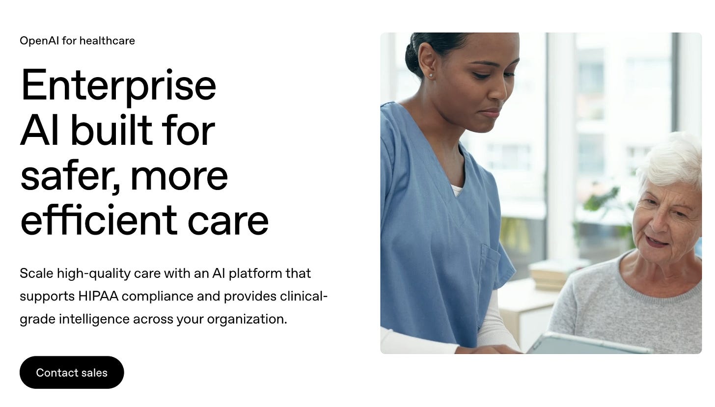 The next day, there was a separate announcement called OpenAI for Healthcare. (Don’t these two sound almost exactly the same. Try not to get confused. 🤦)