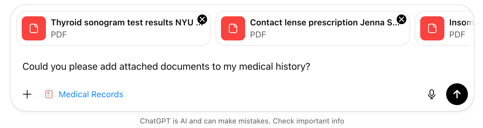 In addition to myChart history, I uploaded around 50 medical files I saved over many years.