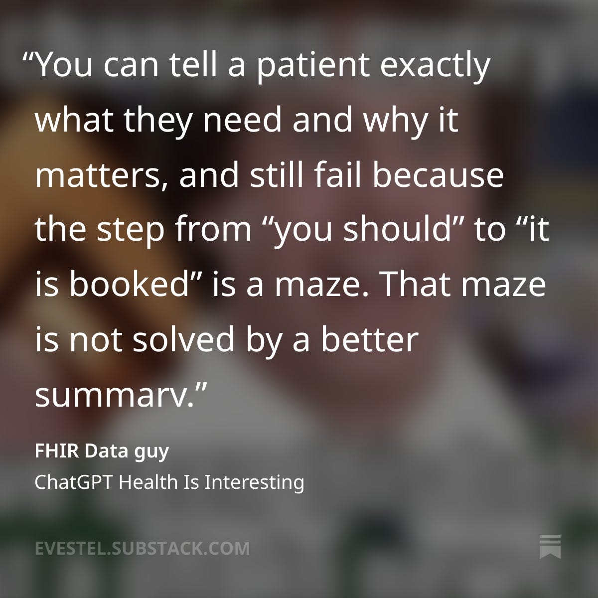 Interestingly, while I was writing this, I came across a sharp piece by Gene Vestal, aka the “FHIR Data guy,” who made the same argument with zero fluff.