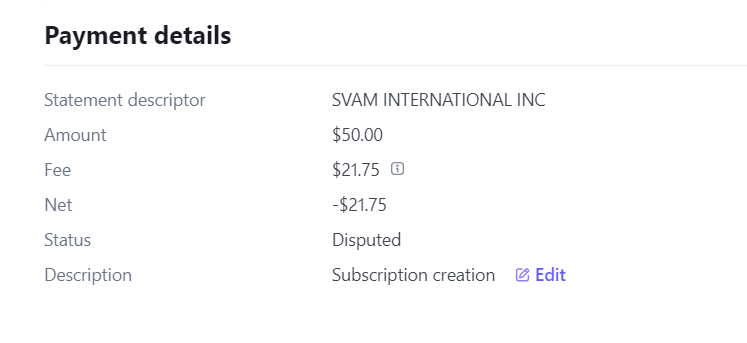 The negative balance also made Stripe charge my company bank account (the account where Stripe deposits all the money). This + the fraud claim have spooked out the accounting department. Both SVAM and I are very new to this whole thing- and it was hard enough to get them to start this engagement to begin with. So I need to make sure everything is cool internally. All part of growing pains I guess.