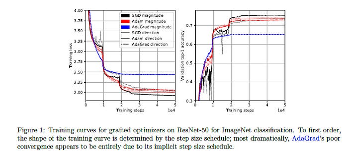The authors in the paper attempt to isolate how important choosing the correct step size is in learning behavior. They do so by proposing a grafting experiment. Instead of taking the magnitude and direction from the same optimizer, we take them from two different optimizers.