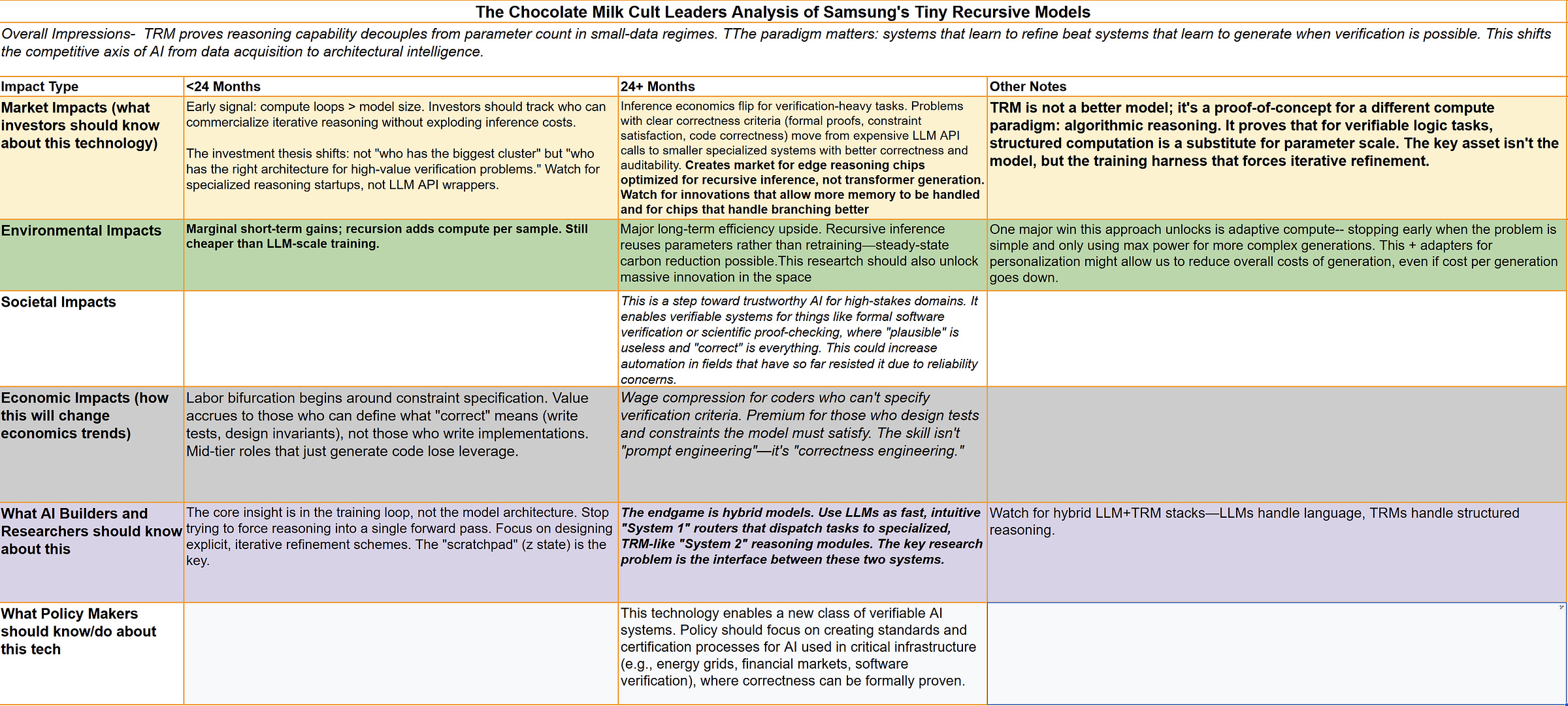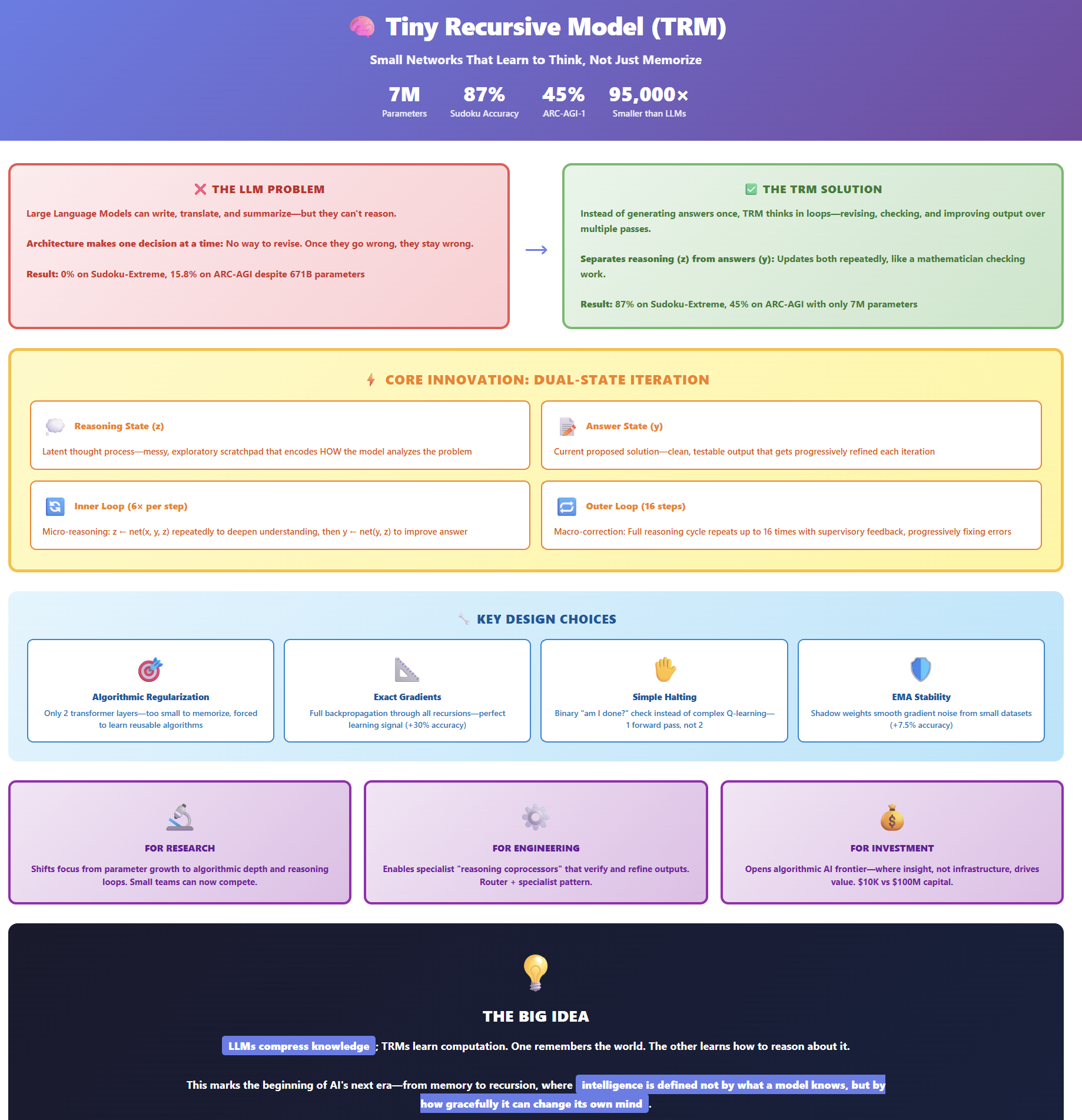 A Multi-Dimensional Analysis of TRM’s Impact: We will examine the strategic implications of this new paradigm, covering its potential to reshape AI research trajectories, create new engineering patterns for specialized models, and unlock novel investment opportunities in “algorithmic AI.”