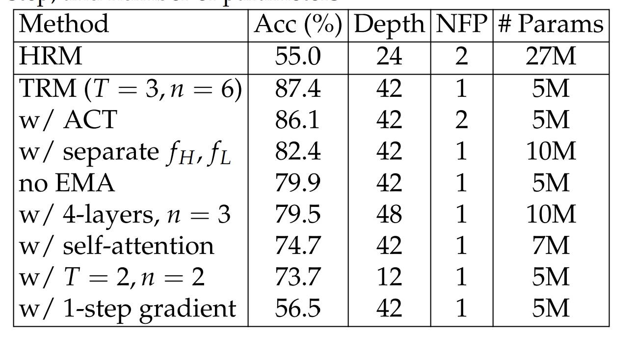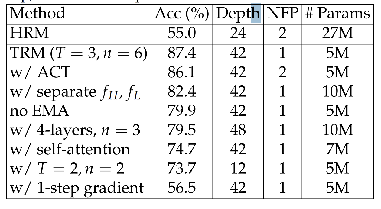 On Future Algorithms: TRM uses a fixed recursion depth. The next frontier is making this dynamic — a model that learns to control its own computational budget, performing more reasoning steps for harder problems. Developing good early stopping mechanisms and reward signals will also be a very important component here.