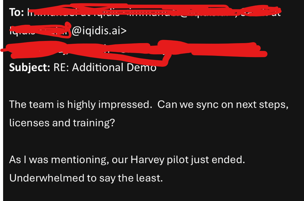 This has allowed us to build legal reasoning that far surpasses standard foundation models without putting us through the grind of training our own models. It’s also why Iqidis has been outperforming all other legal AI competitors, including well-funded alternatives like Harvey AI.