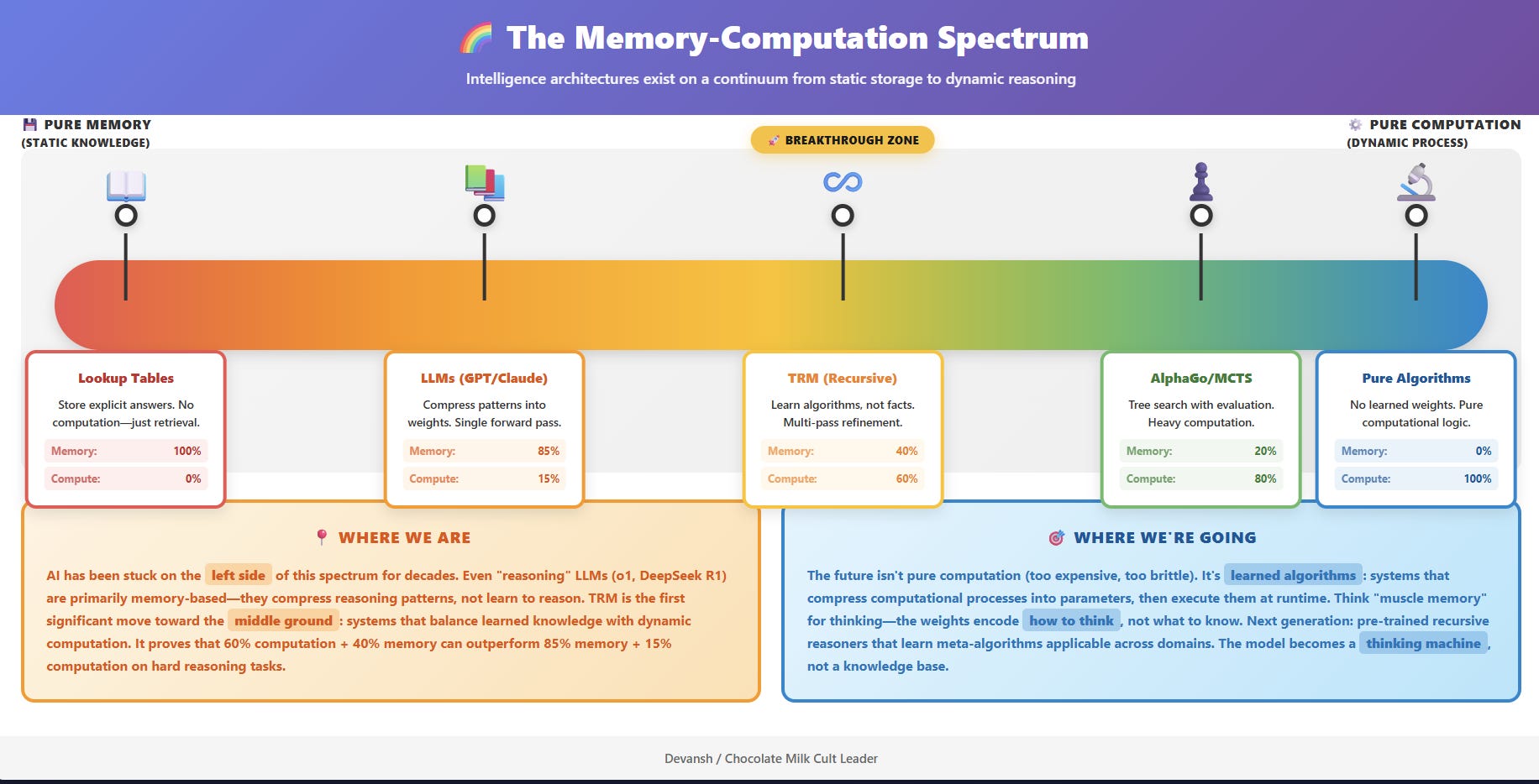 TRM represents a shift to systems of computation. It does not store the answer; it learns the process for finding the answer. Its parameters do not encode facts, but the steps of a reusable, verifiable algorithm. It is an architecture of thought.