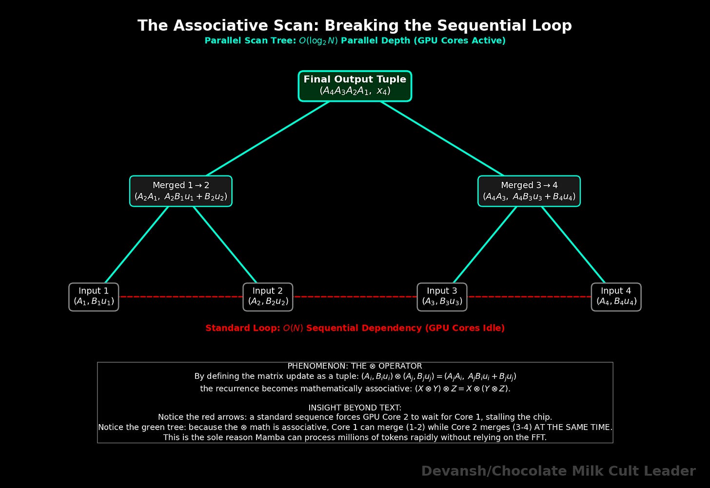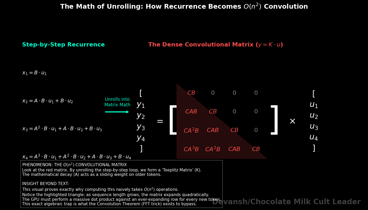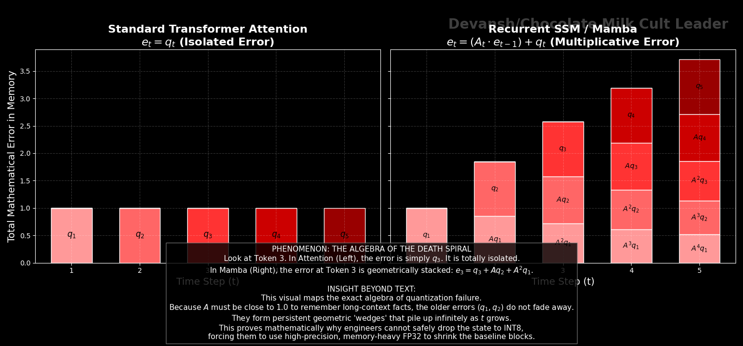 Section 2 — Mamba and State Space Models: the control-theory approach to killing the KV cache entirely, the FFT cheat code, why selectivity broke the convolution math, and the quantization error compounding problem that keeps Mamba out of production.