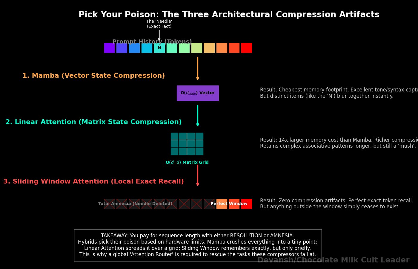 What you lost: Exact retrieval. A pure Mamba model at 128K context cannot do needle-in-haystack with the same precision as full Attention. Feature collision degrades with sequence length — the longer the context, the worse the compression artifacts get. For workloads requiring verbatim recall (legal, code, medical records), this is a categorical capability loss, not a slight quality tradeoff. You also need a full retrain from scratch on the new architecture, thinner ecosystem tooling, fewer battle-tested serving frameworks, and custom CUDA kernels that are sensitive to quantization drift (Section 2).