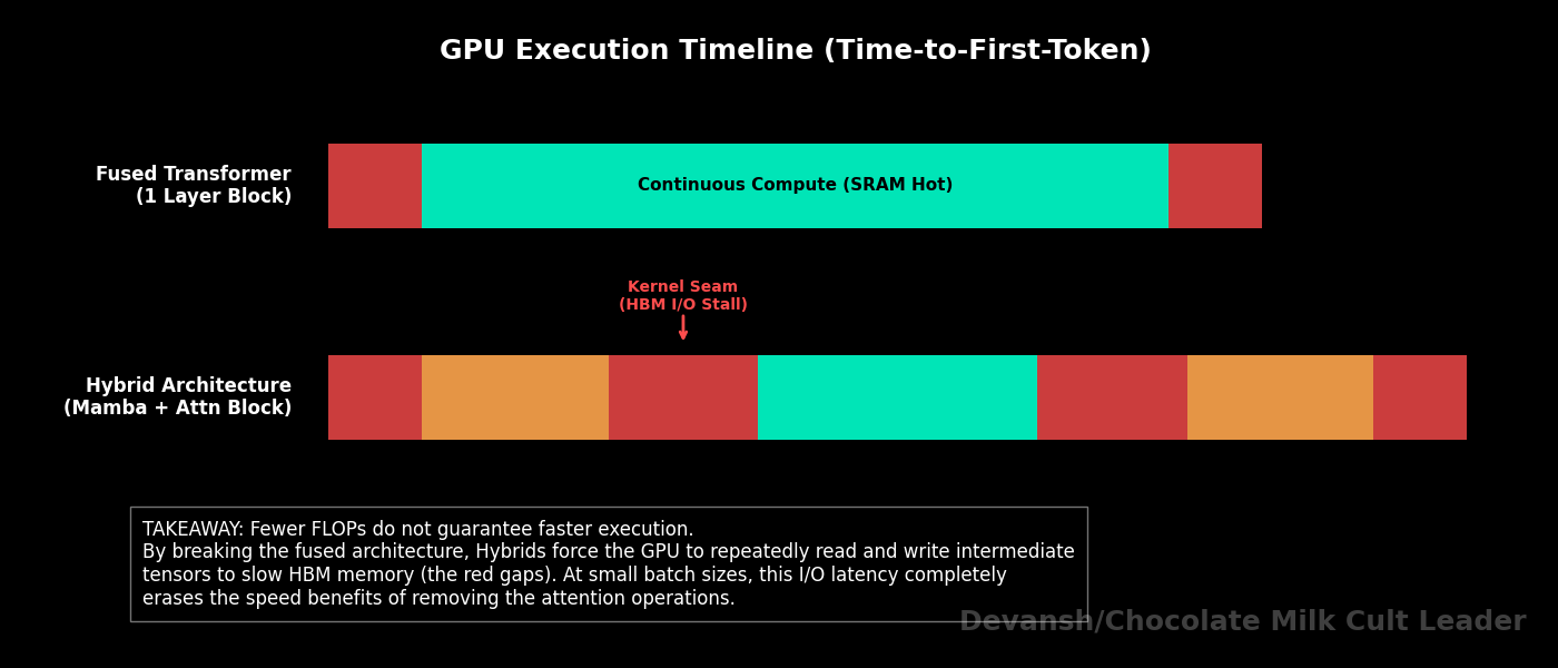 Section 4 — Hybrid Transformers (Jamba, RecurrentGemma): the portfolio allocation approach, the residual stream rescue mechanism, the 87% KV cache reduction — and the three friction points (kernel switching overhead, serving stack rewrites, the wall doesn’t disappear, it rotates).