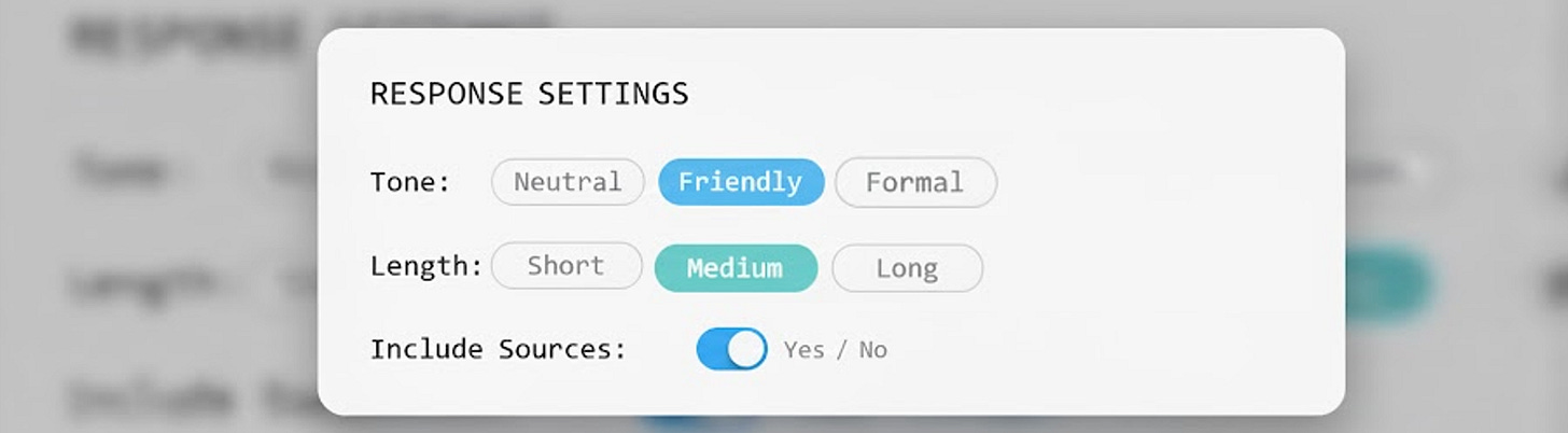 AI UX Patterns has been collecting early interface experiments in the wild. Some tools let you adjust or regenerate just one section of an output instead of throwing everything away. Others add small configuration panels for tone, length, structure, or emphasis. These seem minor, but they change the feel of working with the system. They introduce control points instead of making the user keep prompting and hoping.