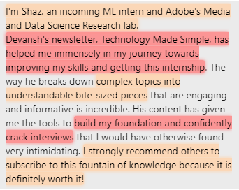As a final proof of effectiveness, I used to tutor people in AI, Coding Interviews and more (my second newsletter was, at one point of time, dedicated to cracking interviews specifically). I applied this framework w/ several people, leading to remarkable success in their interview process (I was so confident in this that I offered the most generous refund policy out of anyone in the space: complete refund within 6 months if you were unhappy w/ the results, no questions asked).