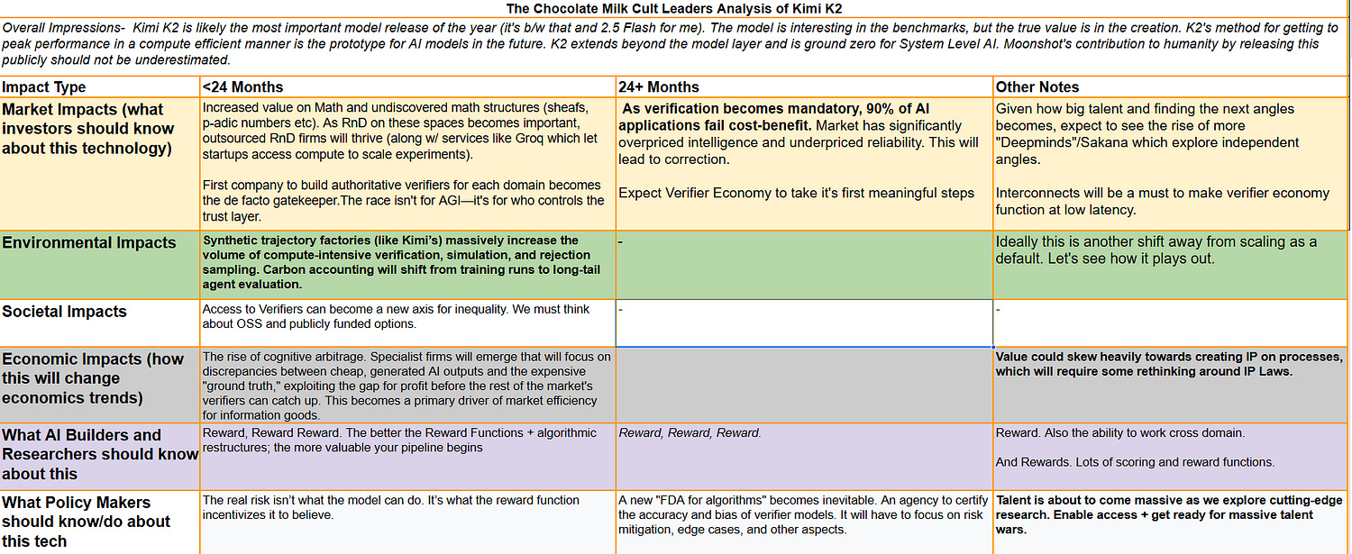 Below is our trustworthy table of impacts w/ more details on Kimi will impact the AI Ecosystem. Once you’re convinced of the importance, let’s get into the piece.