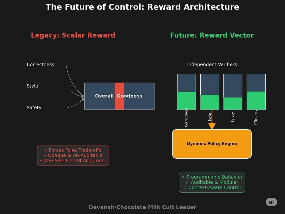 This and orthogonal rewards (where different rewards check for different things as opposed to the same critic scoring both flow and rigor and other attributes) will all be a must for training complex systems at scale. And will lay the ground for the Verifier Economy in doing so.
