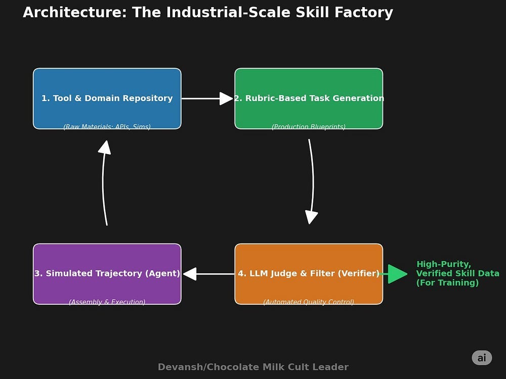 An Industrial-Scale Skill Factory: Their agentic data generation protocol is an engine for manufacturing multi-step experience+ native tool use, with integrated verifiers serving as the non-negotiable quality control. This is the first industrial-scale proof that the Verifier Economy is the only path to reliable agents.
