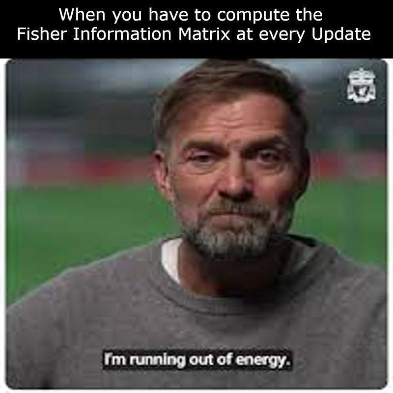 However, for a model with trillions of parameters, computing, storing, and inverting the Hessian is computationally intractable. This has forced the field to rely on first-order methods. We covered all these points in more depth in our deep dive to natural gradient descent (a true second-order method), which you can find here —