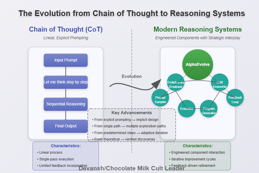 This mirrors what we already do with retrieval, tool use, and verification: extract what models do poorly into infrastructure and let them do what they’re good at. Systems like AlphaEvolve demonstrate the payoff — real economic gains from externalized search and evaluation, not from “thinking harder” inside weights.