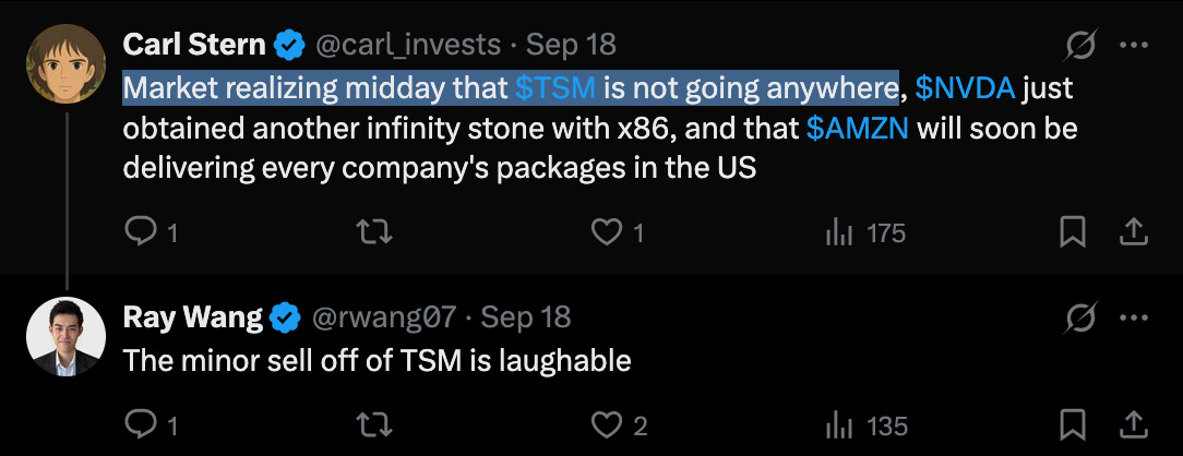 A potential future risk for TSMC would be if NVIDIA were to source wafers from Intel’s foundry, which would represent a major strategic shift. However, as of today, I have yet to see an indication of such a move. But again, there is no doubt that Jensen’s endorsement of Intel’s advanced packaging is a timely boost for Intel Foundry—reinforcing Intel’s technological capabilities and providing much-needed confidence. And again, time for Intel to execute.