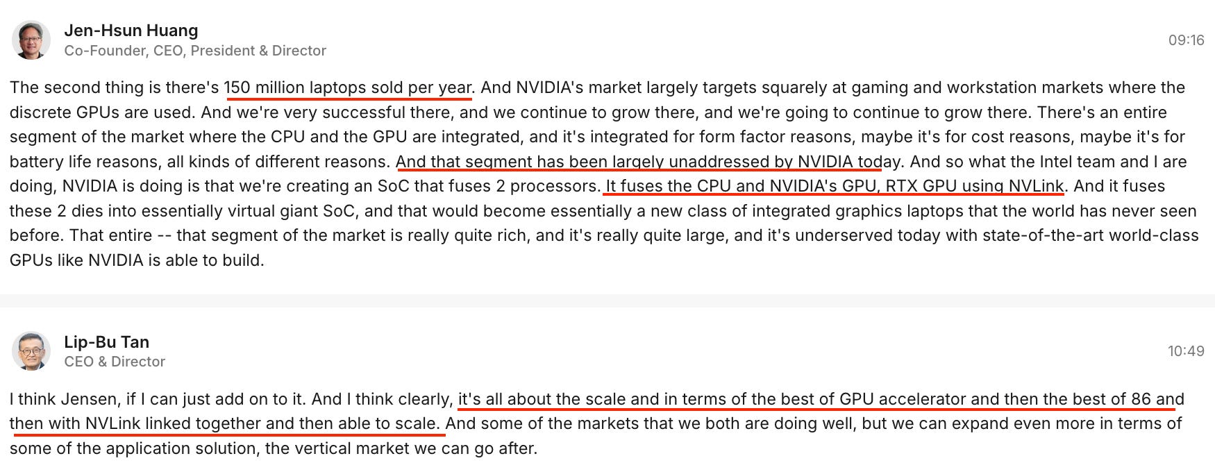 Beyond market opportunity, I see two key benefits from NVIDIA’s collaboration with Intel on AI PCs.