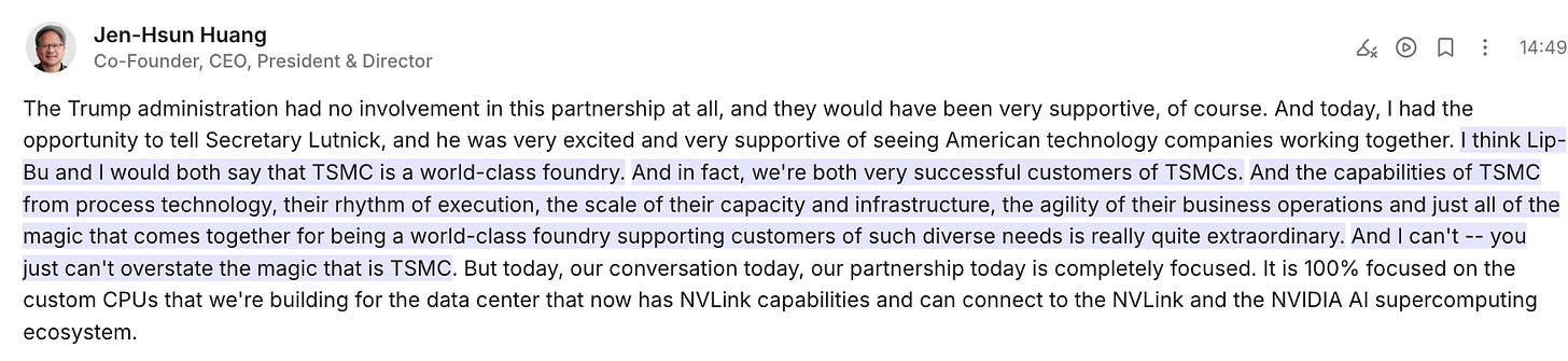 This is an outstanding analysis. Your point about AMD facing pressure on both client and server sides simultaneously is critical - the Intel/NVIDIA co-branded AI PC solution could really erode AMD's momentum in the client market where they've been gaining share. However, I think AMD's chiplet modularity still gives them flexibility across workload profiles that the Intel x86 partnership may struggle to match. The real wildcrd for AMD is how quickly they can scale ROCm ecosystem adoption - if they can crack that, the MI series could still carve out meaningful share despite NVLink Fusion's expansion. The 'zombie Intel' thesis is fascinating though - using $5B to keep Intel alive as a controlled counterweight to AMD is strategic chess.