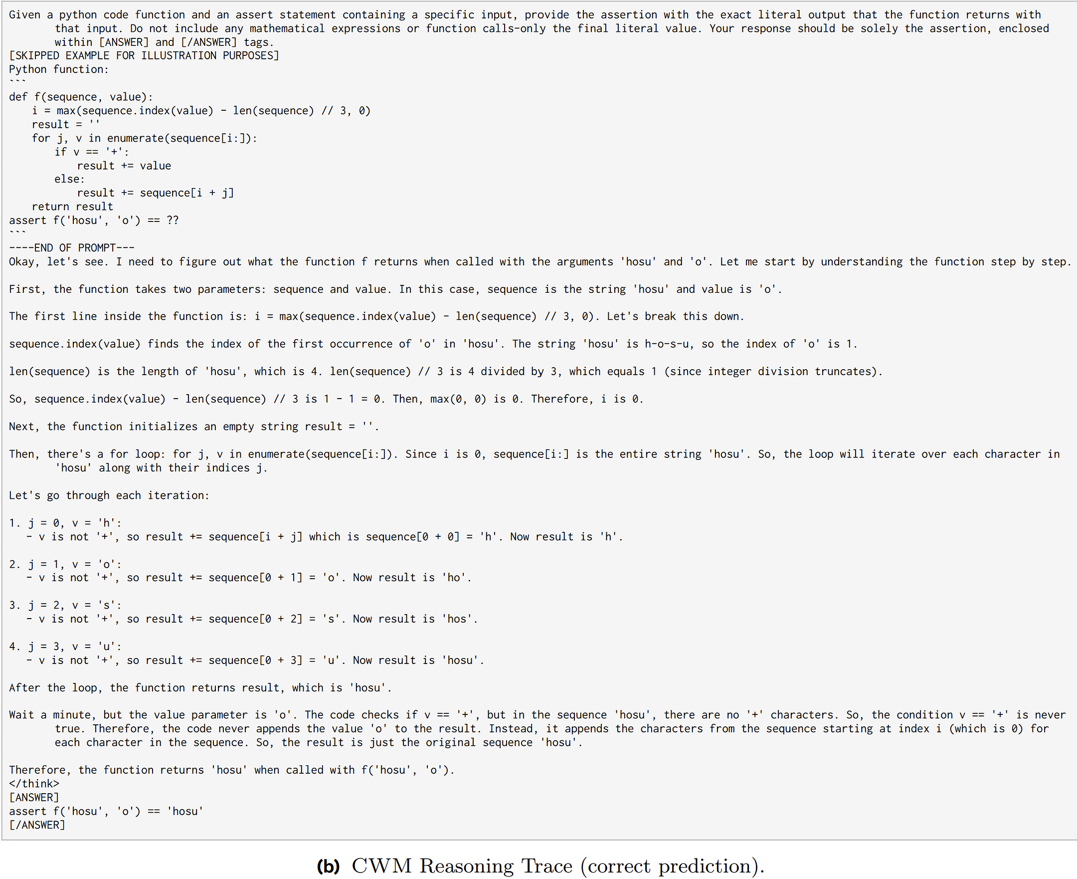 Meta trained CWM not just on code but on 120 million Python execution traces — line-by-line records of how variables change as programs run.