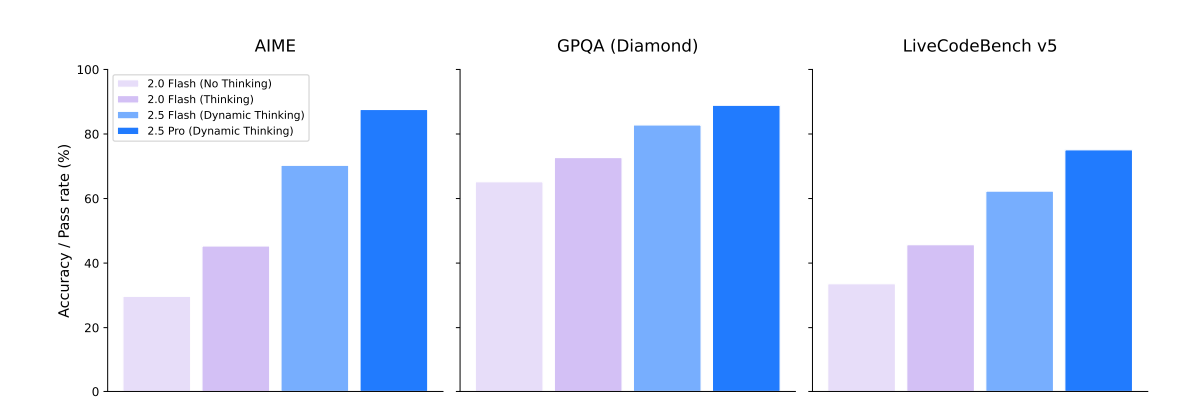 Cost-Effectiveness: Flash significantly outperforms last year’s flagship model, Gemini 1.5 Pro, on critical reasoning and coding tasks at a fraction of the cost. For example, on AIME 2025, Flash scores 72.0% compared to 1.5 Pro’s 17.5%. On LiveCodeBench, Flash achieves 59.3% versus 1.5 Pro’s 29.7%.