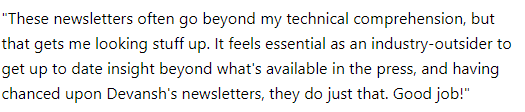 I provide various consulting and advisory services. If you‘d like to explore how we can work together, reach out to me through any of my socials over here or reply to this email.