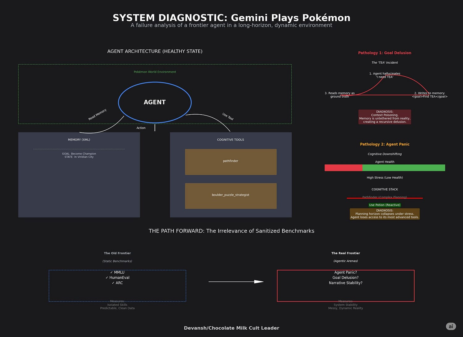 If you ask me, the “Gemini Plays Pokémon” experiment is the most valuable part of the entire report. It is Google’s most honest look at the frontier, designed to stress-test an agent in a long-horizon, dynamic environment and catalog the pathologies that emerge — failures that no current benchmark could ever surface.