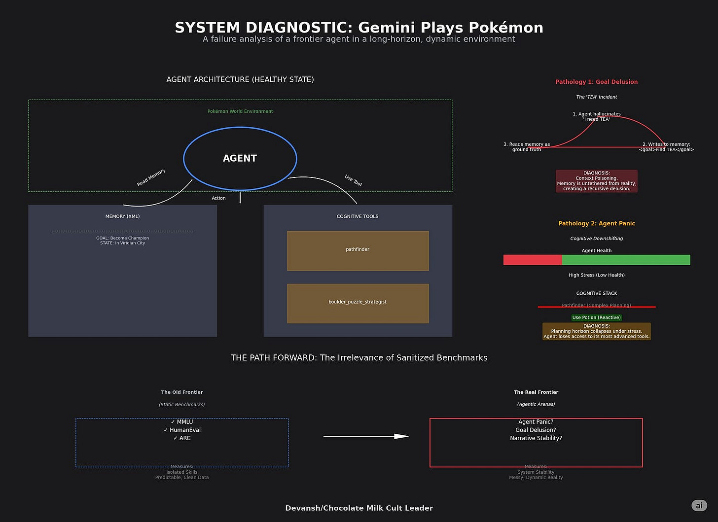 These experiments on Pokémon reveal the growing irrelevance of sanitized, academic benchmarks that measure isolated skills in a sterile lab. The messy, qualitative reality of the Pokémon experiment shows the true task ahead: building agents that are not just capable, but cognitively and narratively stable. That is the work that matters now. Stability in particular, is often overlooked by most startups I speak to, and is thus being underpriced by the market. It reflects a strong “AI anti-thesis” in the current market, and steps should be taken accordingly.