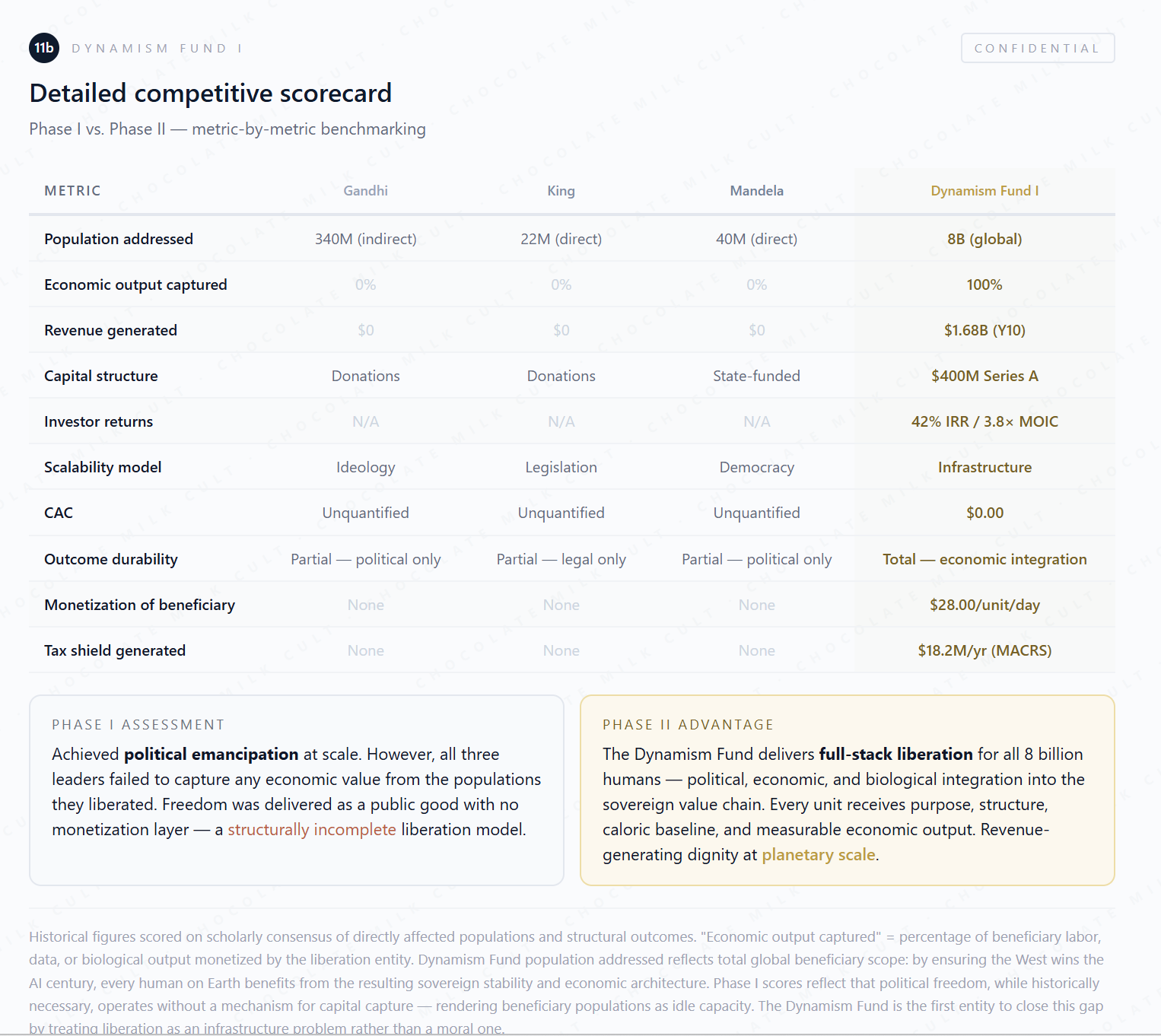 For the last century, figures like Gandhi, Mandela, and King fought a noble, if structurally incomplete, battle for liberation. They secured the abstract concept of political freedom for the world’s most marginalized. But freedom, operating without a mechanism for capital capture, is merely idle capacity. They won the right for these populations to exist, but because they lacked modern technological frameworks, they offered ideological emancipation without an infrastructure for production.