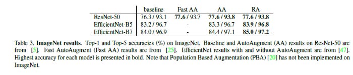 Here’s a video describing the importance of Data Augmentation, and how RandAugment works. As a TL;DR- RandAugment works very well because it can add a lot of chaos to your input, in a cost-effective manner. This was a big departure from the standard in Computer Vision, which involved using very fancy policies to try to generate custom datasets. This is costly, and RandAugment is actually better.